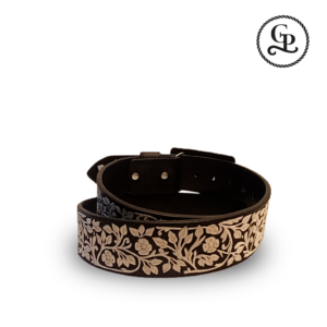Cinturón para caballero artesanal bordado a mano en pita de maguey figura flores color negro