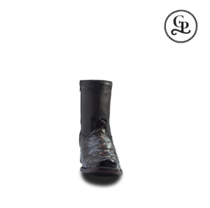 Descubre la sofisticación y estilo único de nuestra bota vaquera para caballero. Fabricada con piel pitón exótico de alta calidad y un acabado en nobuck negro, esta pieza promete resaltar tu personalidad en cualquier ocasión. Con su diseño de horma oval, estas botas ofrecen un ajuste cómodo sin comprometer el porte auténtico de las botas vaqueras tradicionales.