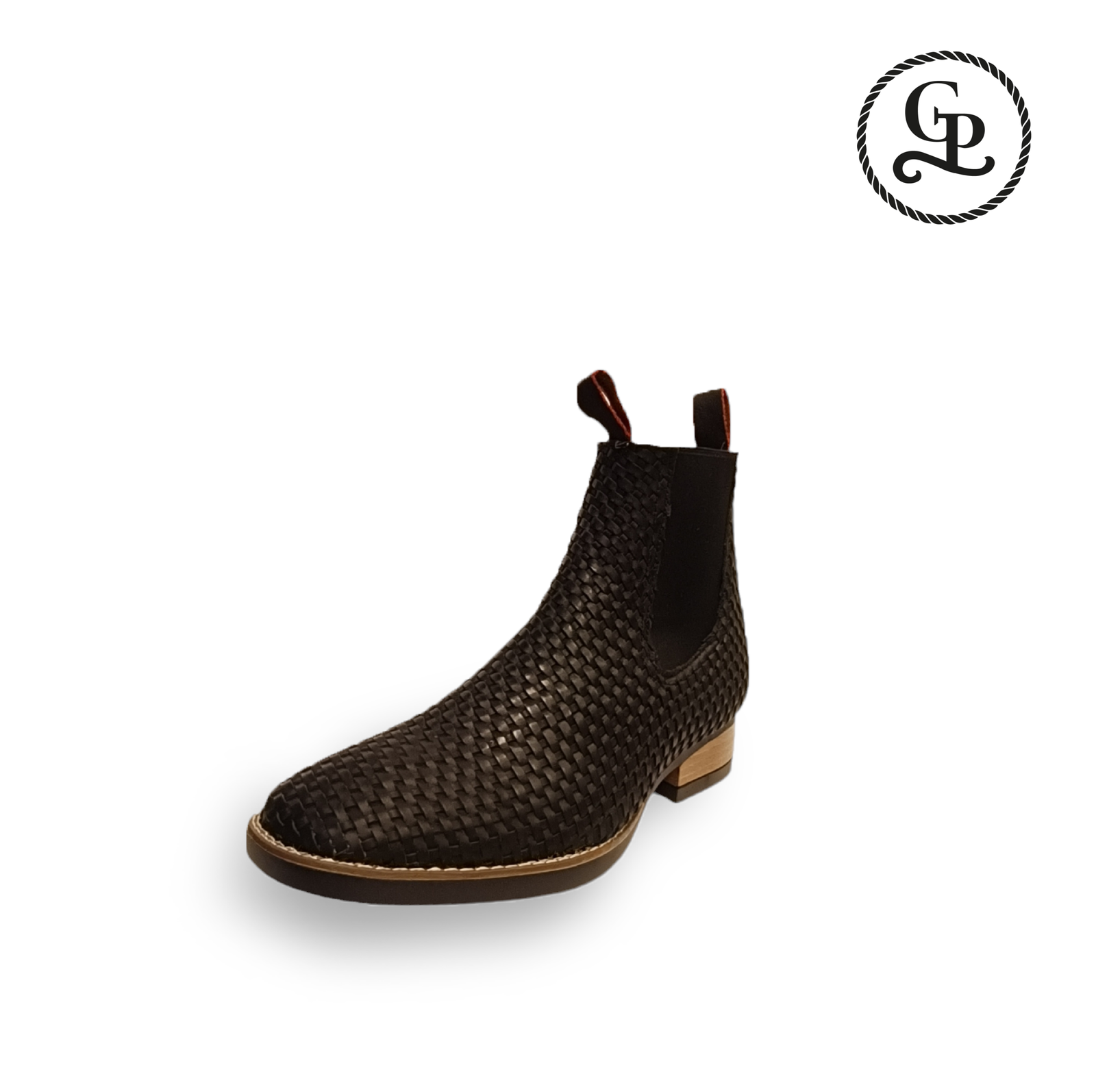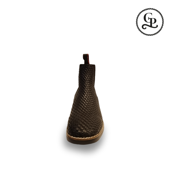 Botín Caballero Bulldog Negro, piel de Res tejido, color negro y suela zigzag