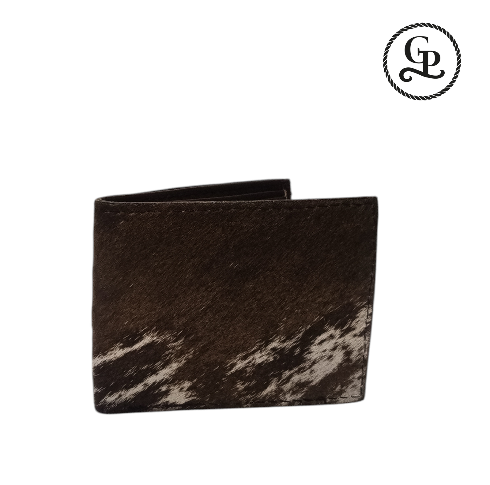 Nuestra cartera para caballero destaca por su piel genuina de pelo vacuno en color pinto, ofreciendo un diseño exclusivo que combina elegancia y estilo. Perfecta para complementar cualquier atuendo.