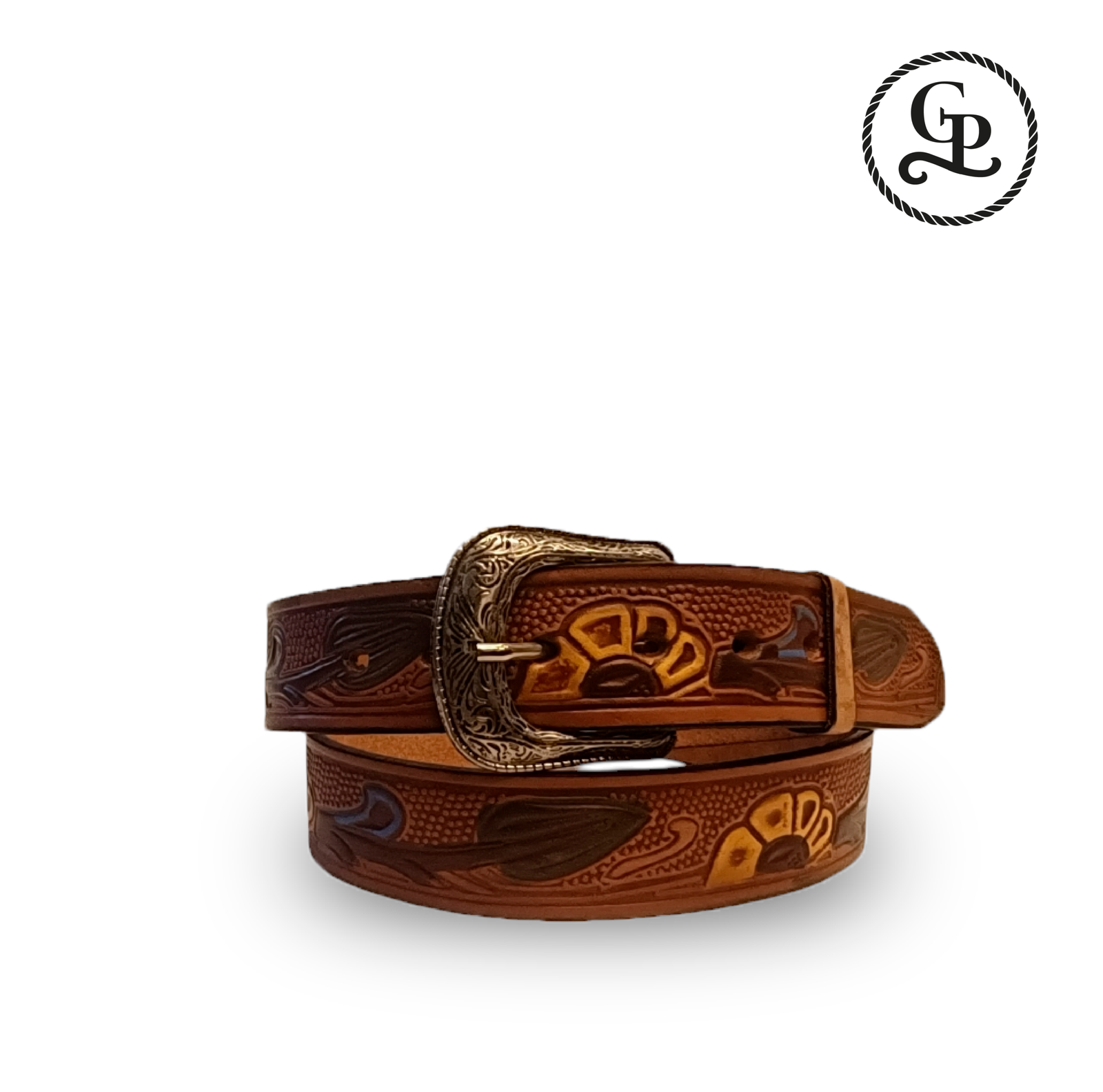El cinturón para dama cuero grabado Girasol destaca por su diseño exclusivo que combina estilo y elegancia. Con un grabado de girasol cuidadosamente elaborado, este accesorio añade un toque distintivo a cualquier outfit, haciéndolo ideal para quienes buscan algo especial.