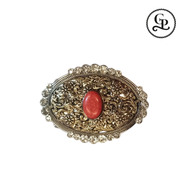 Hebilla unisex rameada con piedra roja color oro