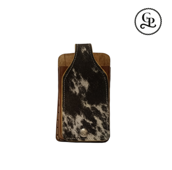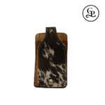 El portacelular de pelo vacuno color pinto combina diseño funcional y elegancia. Perfecto para quienes buscan un accesorio práctico que destaque por su calidad y originalidad.