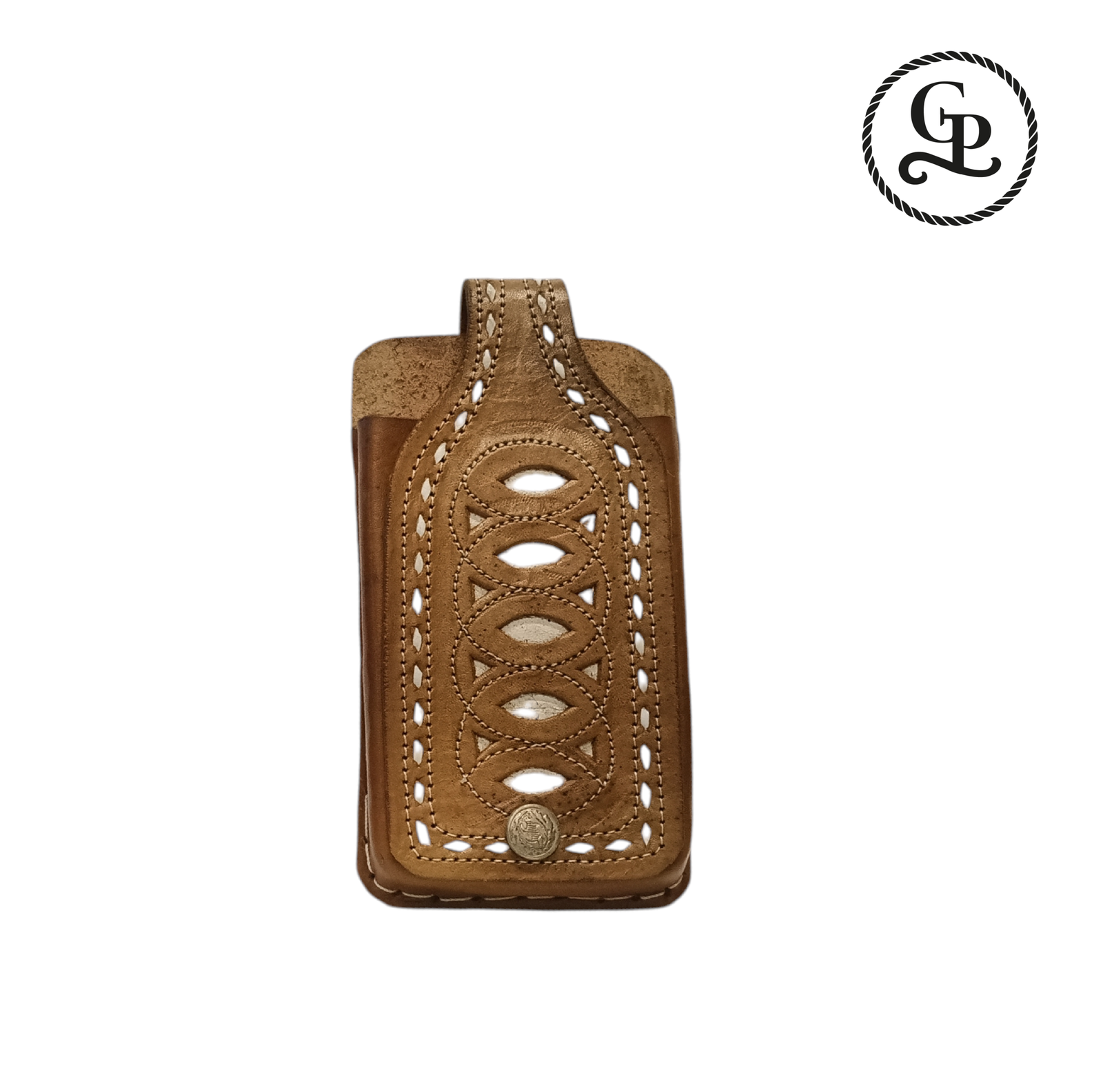 Portacelular suajado con punta de pia color miel